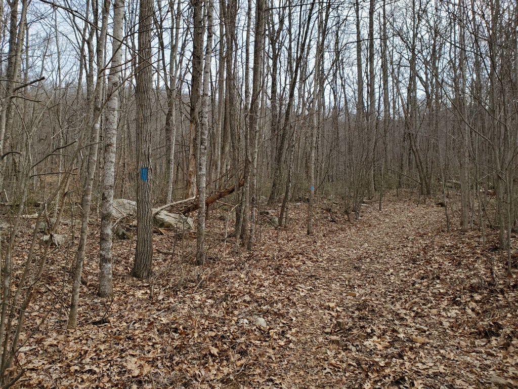 Shortly after a small field that could be a wildlife opening — an area that is planted to provide food for animals — the trail joins a much older road that will continue to Bly Gap.