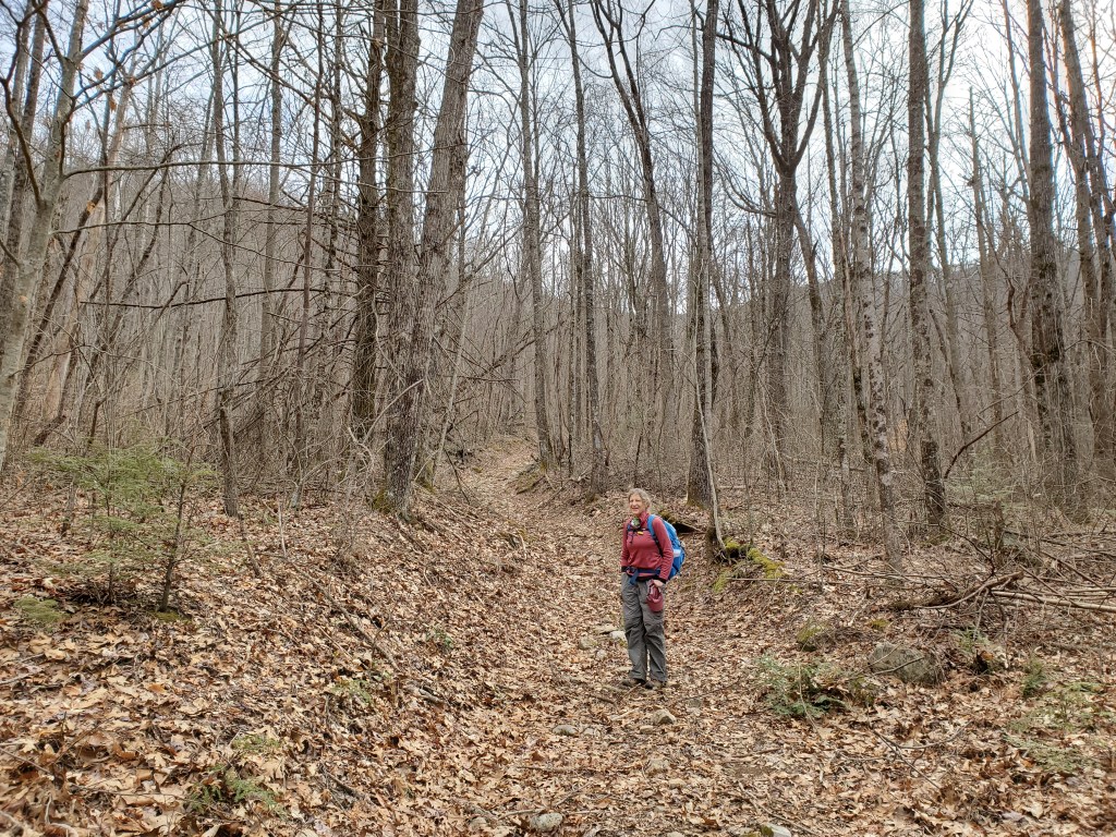 The hike follows roads all the way to Bly Gap on the AT. The first road is wide and smooth. Horseback riders use the first mile or so of the road before they head off on side trails.
