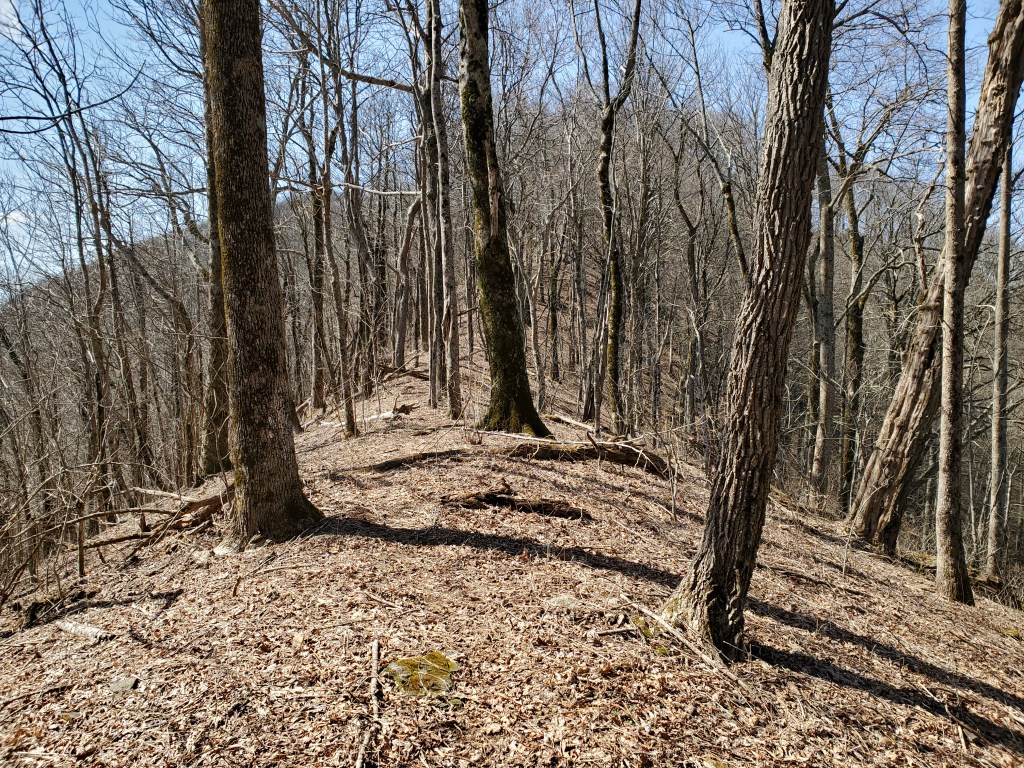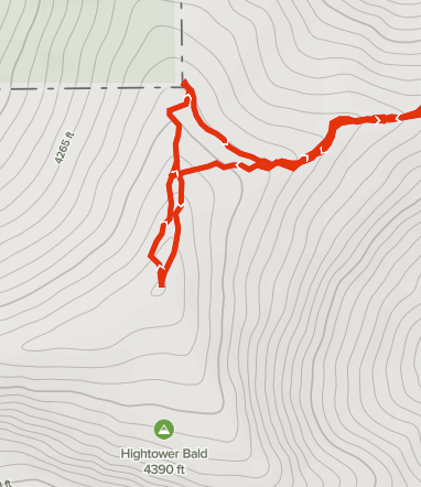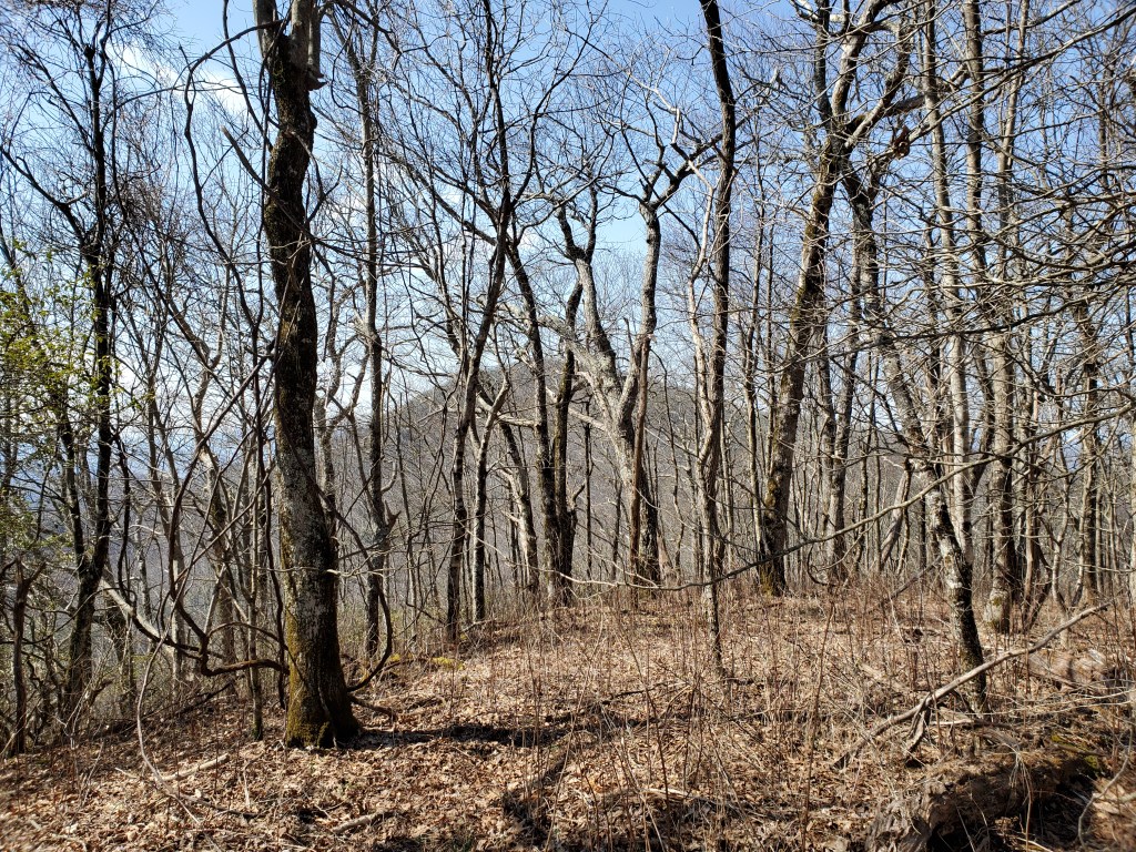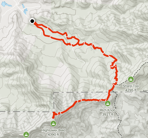 We headed south on the AT for about 100 yards before starting the mile and a half of bushwhack that would take us to the summits of Rich Knob and Hightower Bald. The climb to Rich was pretty easy and mostly open with only a few briers near the summit. Then, the ridge walk from Rich to Hightower was fantastic with open woods and partial views of the surrounding mountains. There was a pretty distinct trail from Rich to Hightower that made walking a little easier. But, the last quarter of a mile to the summit of Hightower was a bit of a struggle through thick vegetation and blackberry briers.