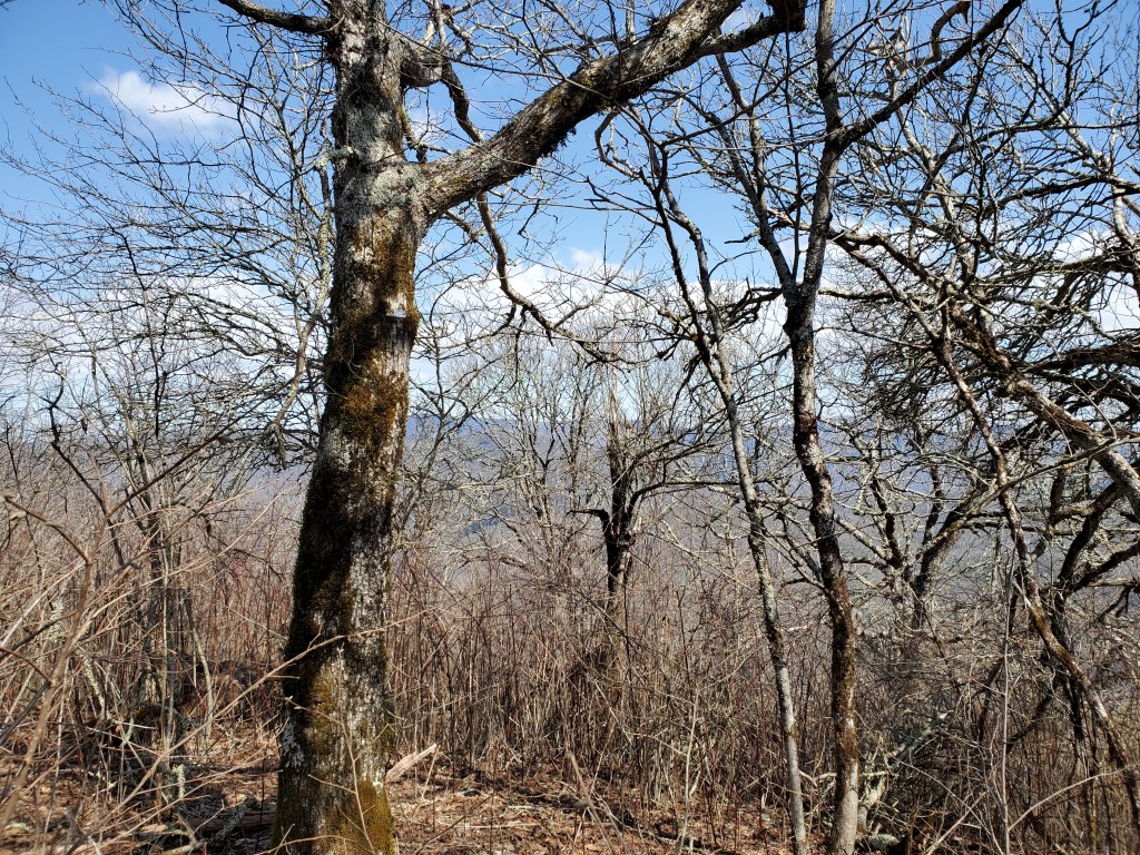 View from Hightower Bald summit. The biggest tree in the foreground is a SOTA tree, an amateur radio site.