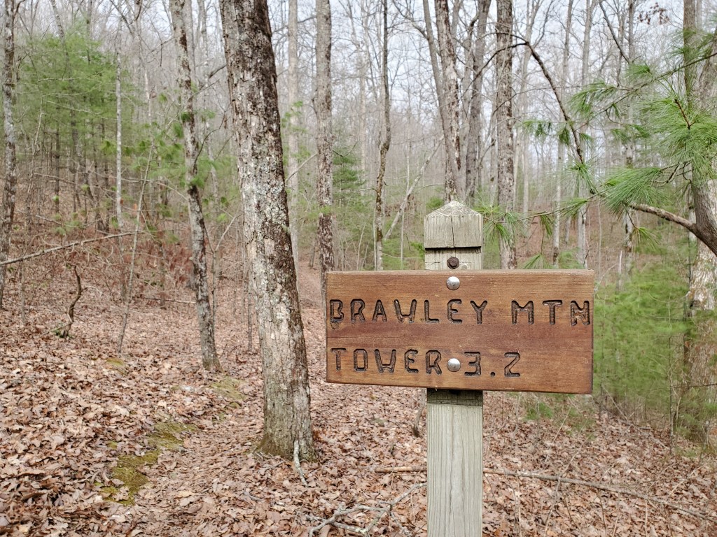 This is my second day of working on my goal to section hike the Benton MacKaye trail from its start on Springer Mountain to the Tennessee state line. This hike continues from where we left off last time, Wilscot Gap on Hwy 60. As expected, the trail is well maintained and easy to follow. Heading out of the gap, the trail climbs steadily to the summit of Tipton Mountain where you can see glimpses of Lake Blue Ridge through the trees. After a descent into a saddle, the next climb is the to summit of Brawley Mountain which has an old fire tower. Eventually, the trail comes down to the Toccoa River, and then continues along paved roads to the Fall Creek Falls trailhead, the end on this hike.