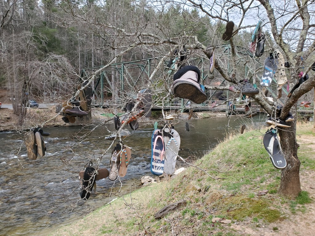 When you come to the river, there are restaurants and tubing services. This tree seems to display items lost on the river.