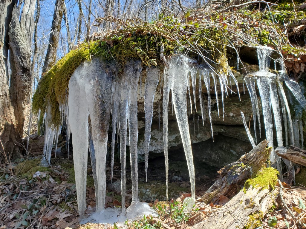 Rattlesnake Knob was the highlight of the day, and maybe even of the entire peak bagging effort. It is one of my favorite peaks, not for the actual summit, but for the climb to get there. The route climbed up a narrow, and somewhat exposed, rocky spur. As you made your way up, there were great views to the south and west. We were even treated to late season icicles.
