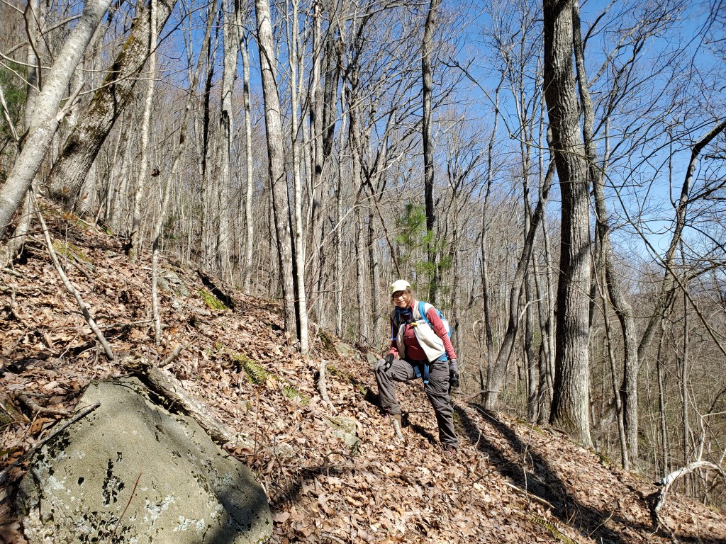 Once we reached Bell Gap, we descended the four wheeler trail to a Forest Service road that we would use for the next 2.8 miles. We needed to leave the road to reach a low spot on Hollifield Ridge that is just north of Old Bill Knob. The climb to the ridge is easiest here.