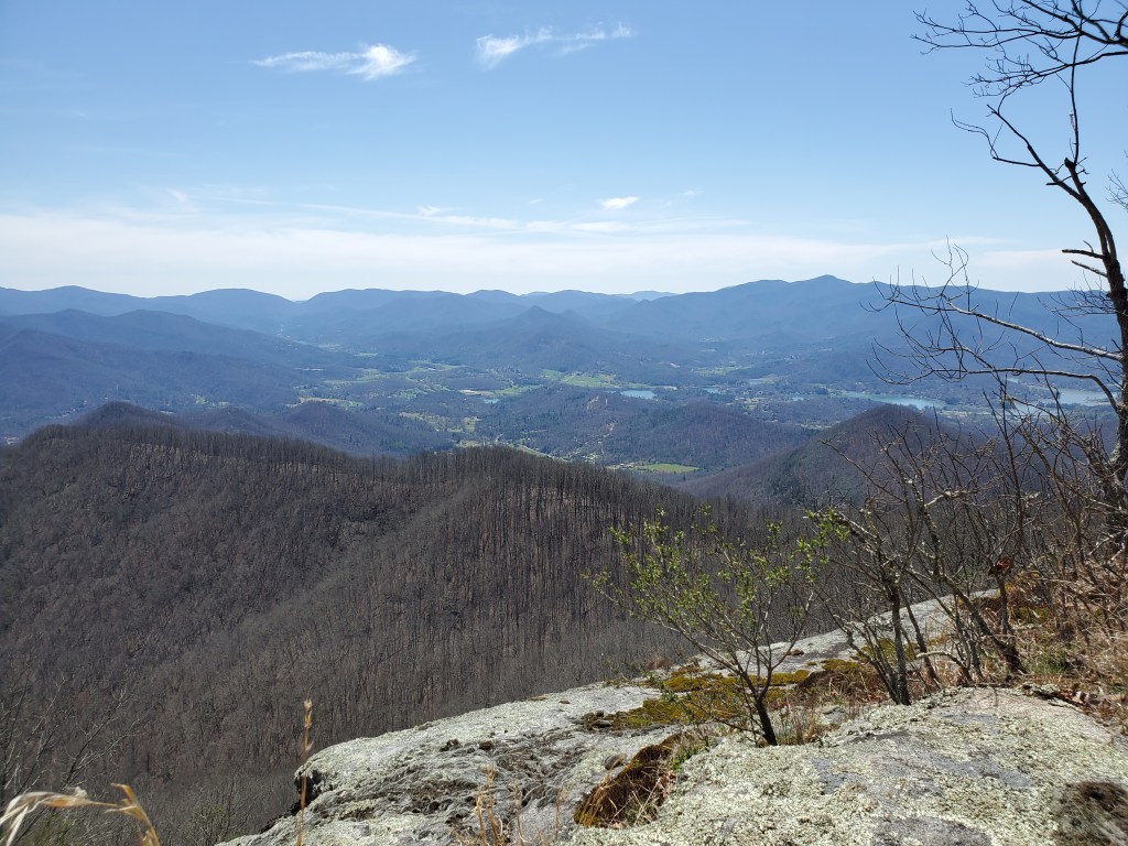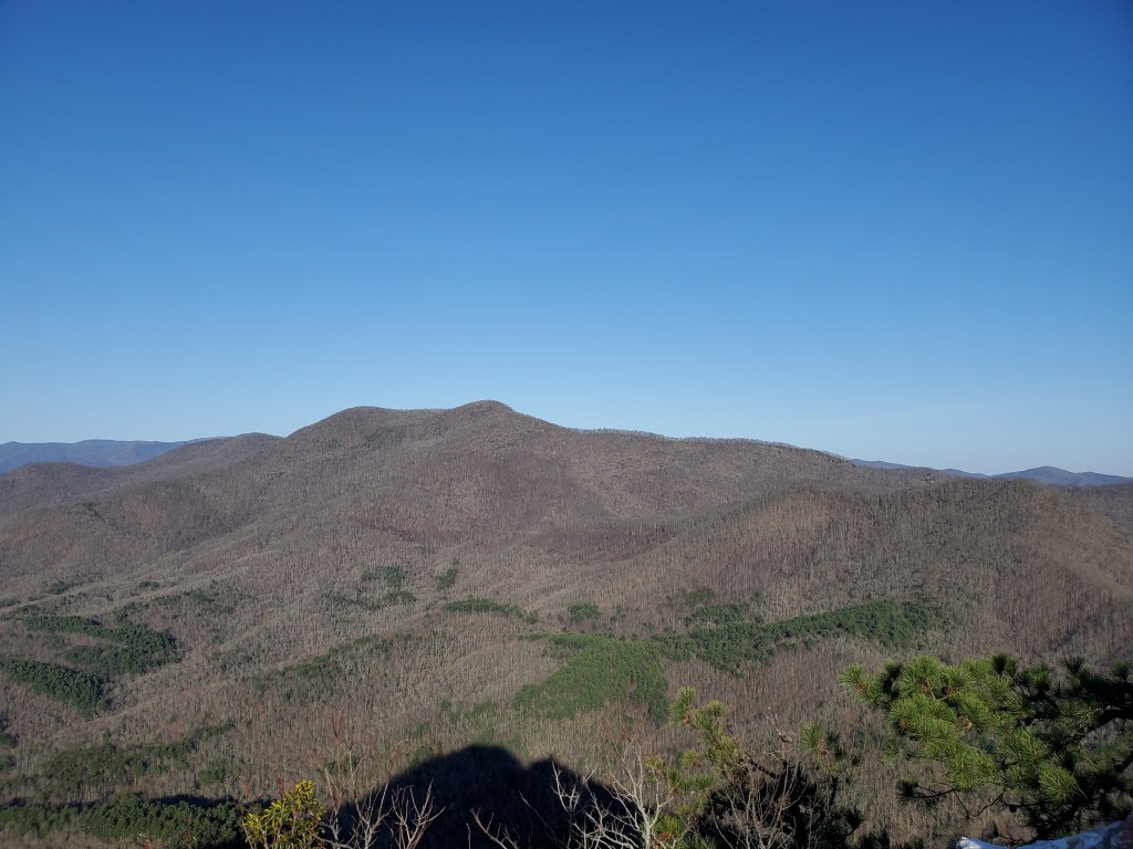 I think this was the most physically demanding peak bagging hike. It also traveled a very interesting route and had some great views. We chose to start our hike from Bell Knob, a public park near Hiawassee. The advantage of starting here is that the property is public, but the disadvantage is that it is on the top of a mountain. And, as it turned out, we underestimated the difficulty of the descent to get to the “normal” route. That route is not available to us because we do not have a high clearance four wheel drive.