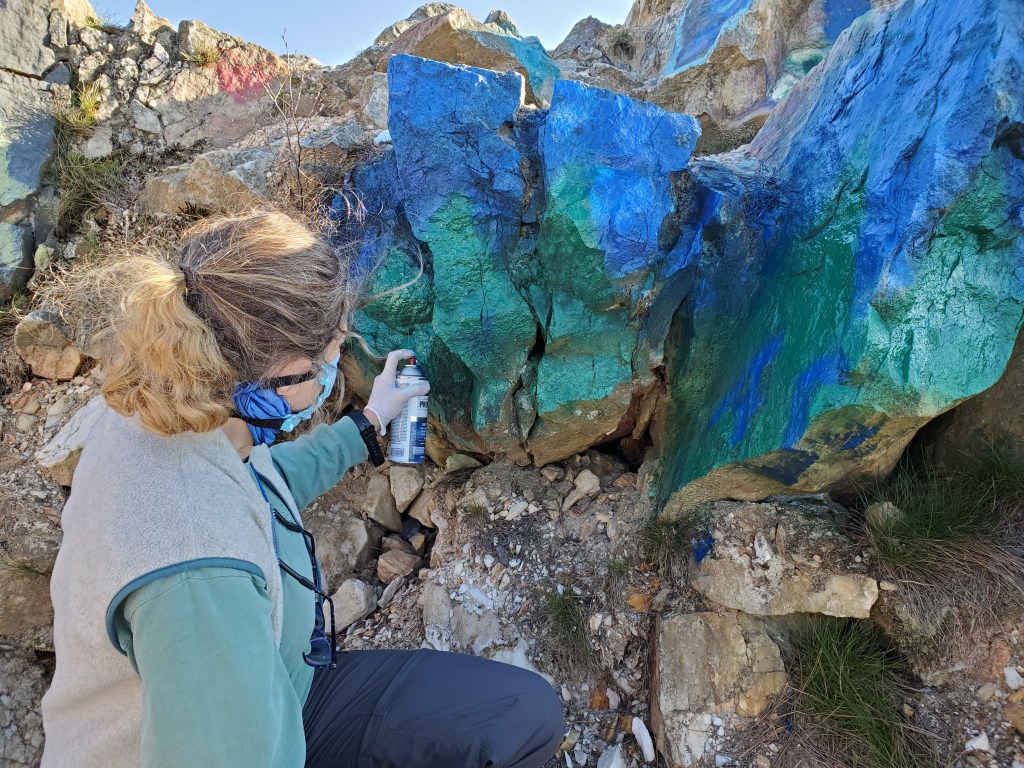 Bell Knob is famous for its graffiti, and in keeping with that tradition, Anne added a tribute to our completing the Georgia 4000 Challenge. The mountains are green and the sky is blue.